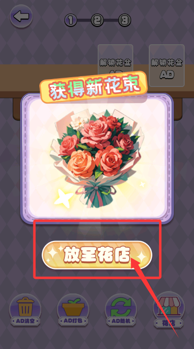 4、完成花艺创作后,获得新的花束,可将作品展示在虚拟花店供人欣赏。
