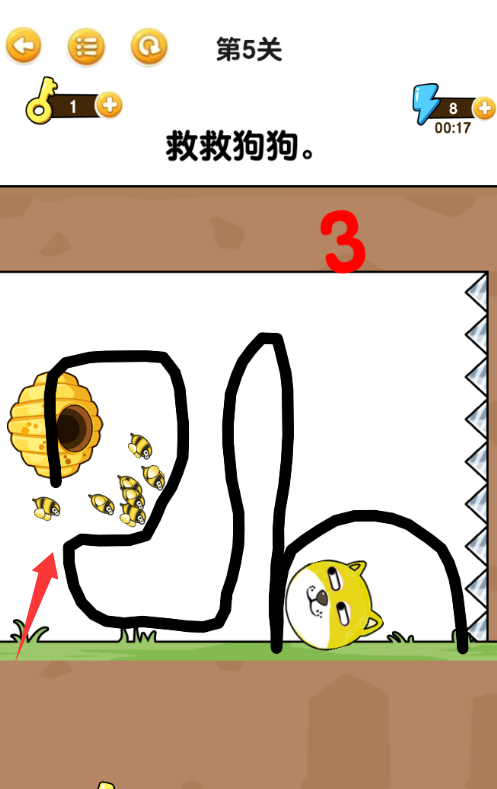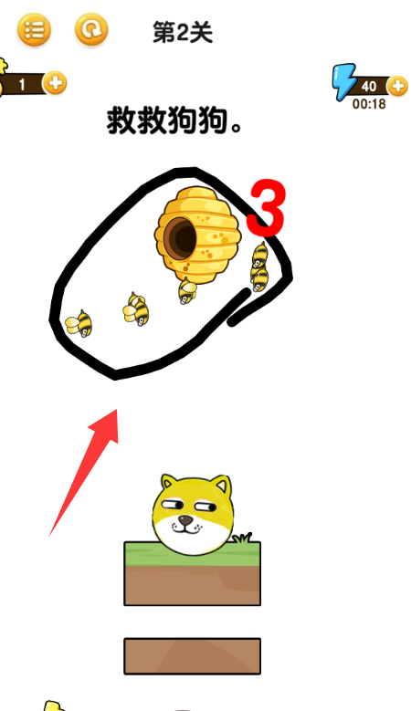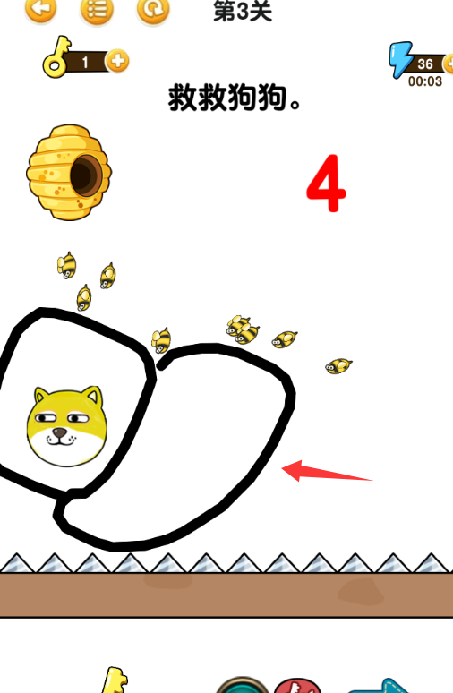 2、进入游戏画个圈圈圈住蜜蜂家就蛰不到狗头。