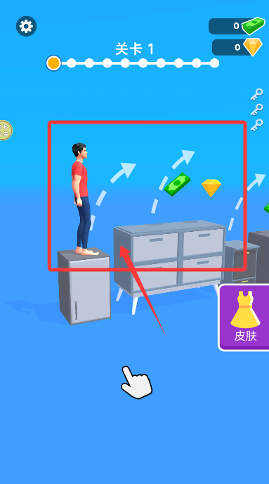 3、第一关卡中控制角色在家具间灵活跳跃,收集散落的金币和珍贵宝石奖励。