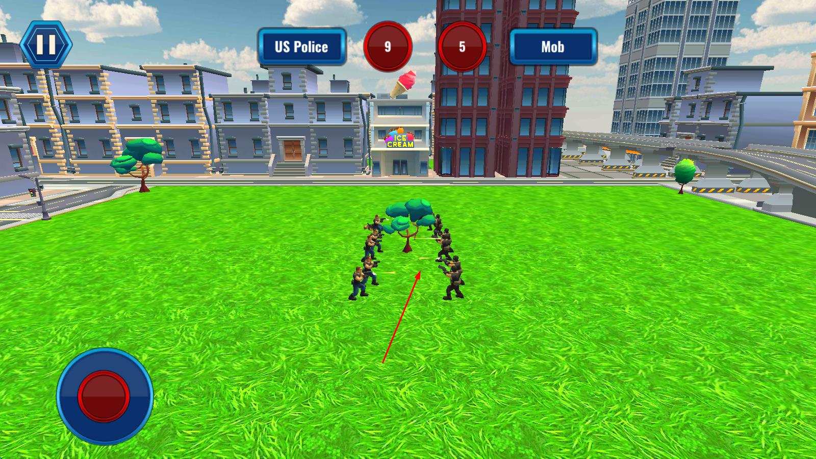 2、战斗进行中,观察警员与匪徒的对抗态势,沙盒模式下可根据战局用获得的金币补充部队,调整兵力部署,持续压制敌人。