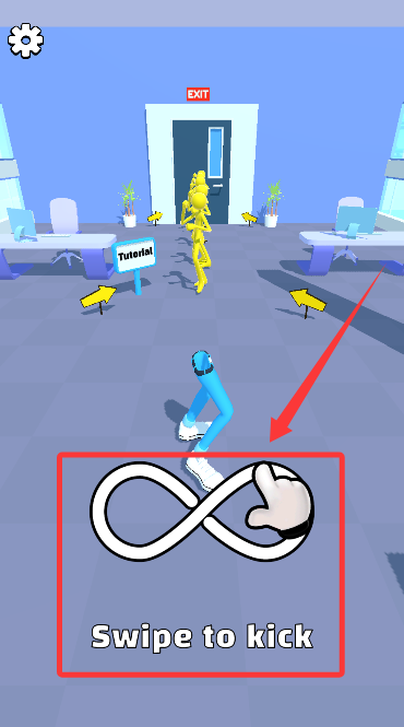 1、游戏开始后,根据"滑动出击"提示,通过手指滑动控制角色发动腿部攻击。