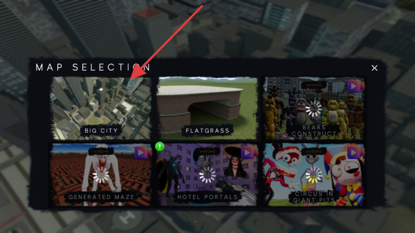 2、进入地图选择界面,有BIG CITY、FLATGRASS等多种地图可供选择,选择合适的地图,开始你的游戏冒险。