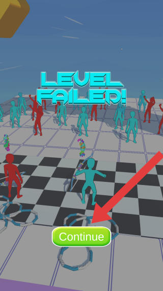 3、显示两位玩家均到达了终点,其余玩家喝彩的画面,可点击Continue方可进入下一关进行游玩。