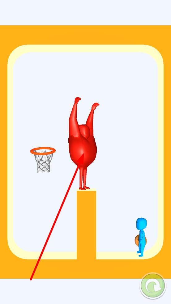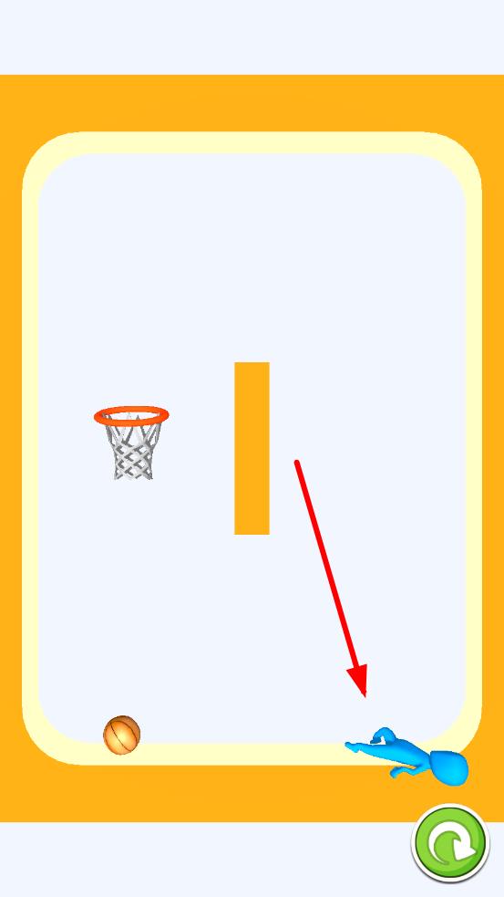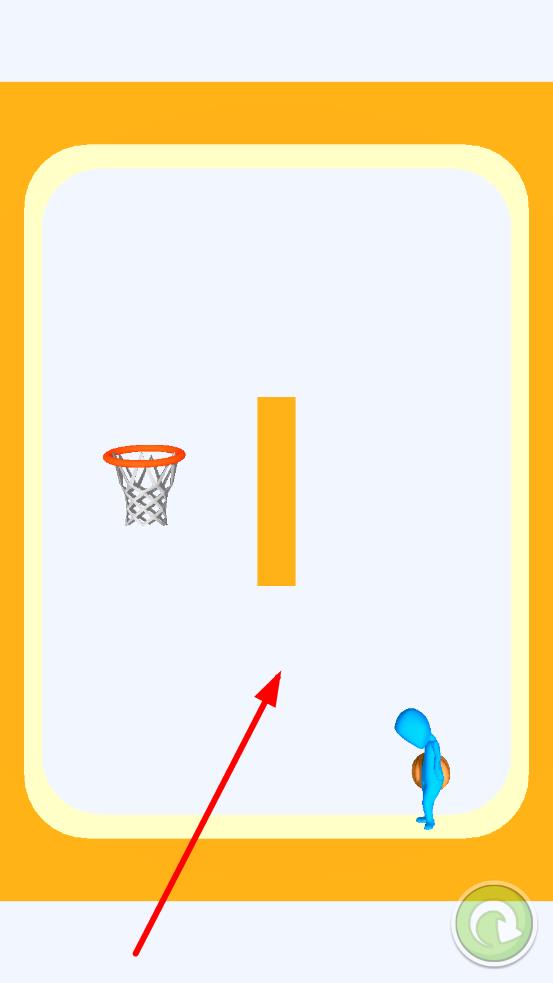 1、进入关卡,观察篮筐位置、障碍分布,玩家滑动屏幕可以看到投篮轨迹,绕过立柱,将篮球投入篮筐。