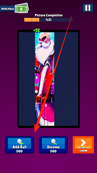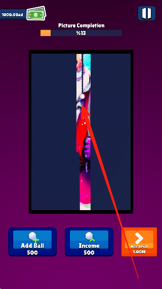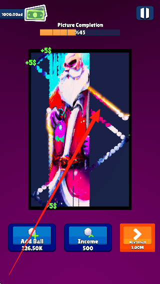 2、利用金币升级购买小球,自由发挥,用不同颜料在空荡的画上随意涂色,让画面逐步变得丰富。