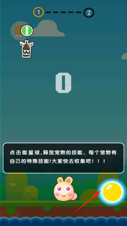 3、玩的时候,看到右下角能量球点它释放宠物技能,不同宠物技能不一样靠这技能帮你更快消气球闯关卡,多收集宠物,换着技能玩更有趣。