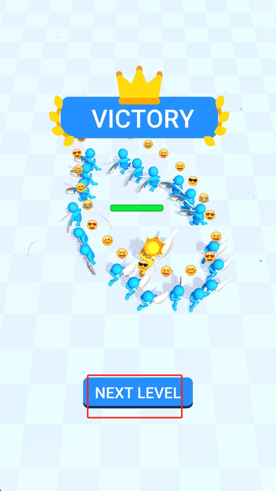 3、胜利后我们点击屏幕下方的蓝色NEXT LEVEL按钮,进入下一关,挑战更强大敌人,延续小兵对战的策略玩法。