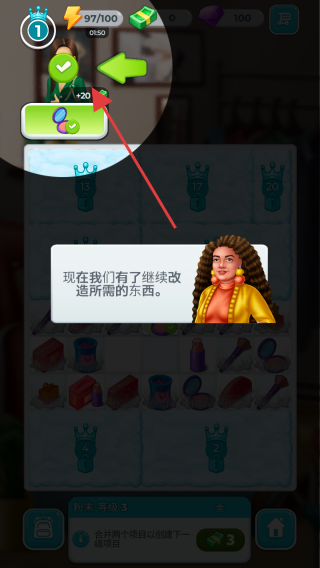 3、合并成功后,会出现提示现在我们有了继续改造所需的东西,此时可继续进行项目合并等操作,不断提升物品等级,推进游戏任务。