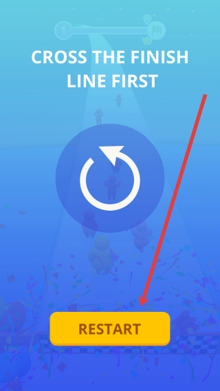 3、点击黄色RESTART按钮,重新开启比赛,调整策略,力求在跑道上超越对手,率先冲过终点线,赢得胜利。