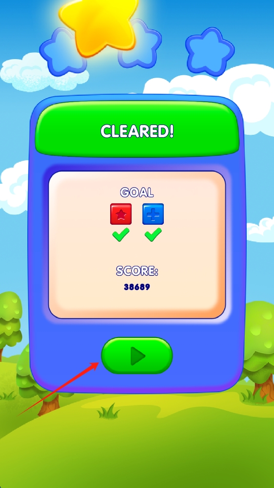 3、成功通过关卡后,在结算界面点击绿色按钮,进入下一关,继续挑战,点击下一关。