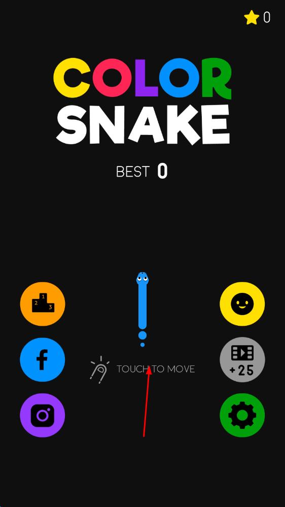 1、踏入游戏,玩家操控小蛇开启旅程,首要任务是控制小蛇穿梭在地图中,吃掉与自身颜色相同的小星星,避开其他颜色的障碍物,以此来让小蛇逐渐变长。