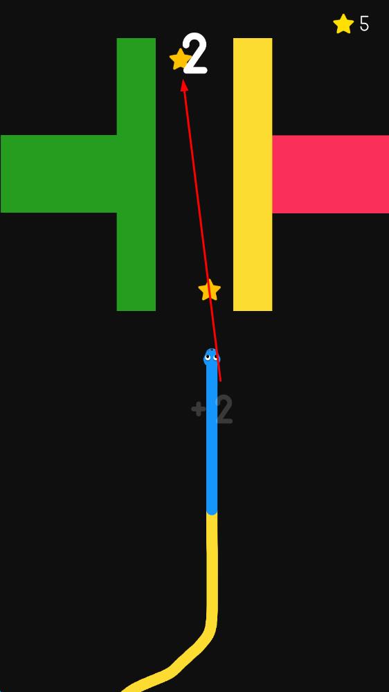 1、精准颜色匹配:控制小蛇优先收集同色星星,触碰同色障碍物可打破前进阻碍,异色物体则需果断避让,确保小蛇安全成长。