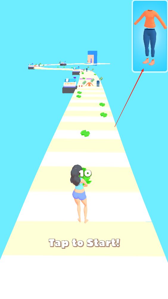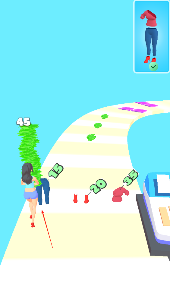 1、开局会告诉我们需要购买的服饰,一边向前移动收集购物资金,一边根据要求选择服饰。