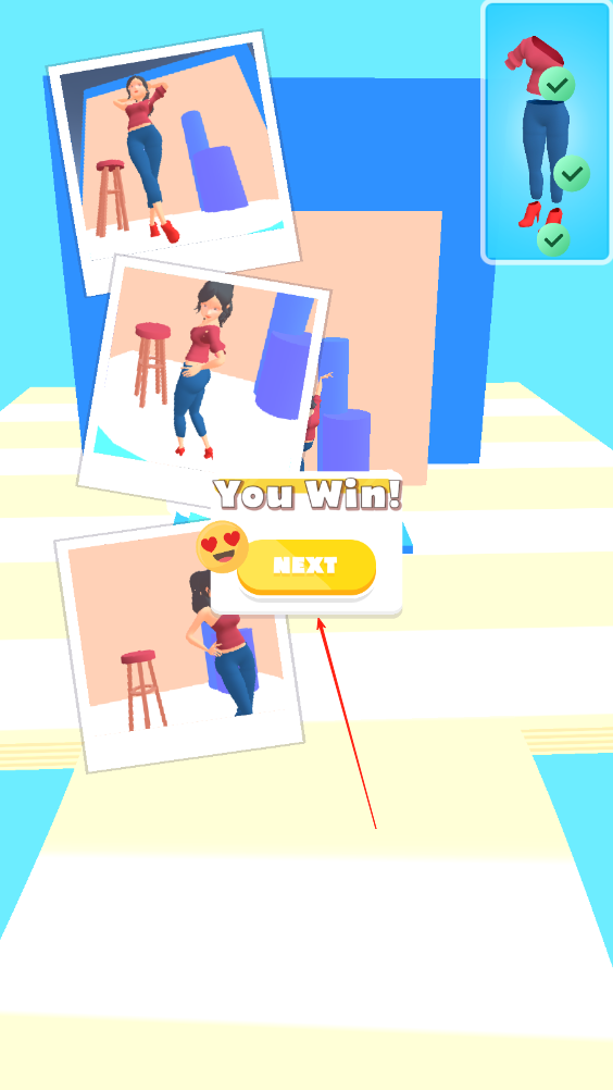 3、到达终点后模特拍照,如果服饰都正确且剩余的购物资金够多,则会获得丰厚的奖励。