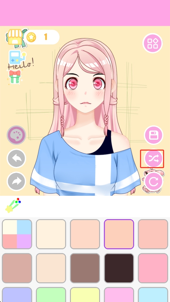 3、点击右侧随机装扮按钮,触发随机造型生成,结合下方颜色面板调整色彩,打造多样风格。