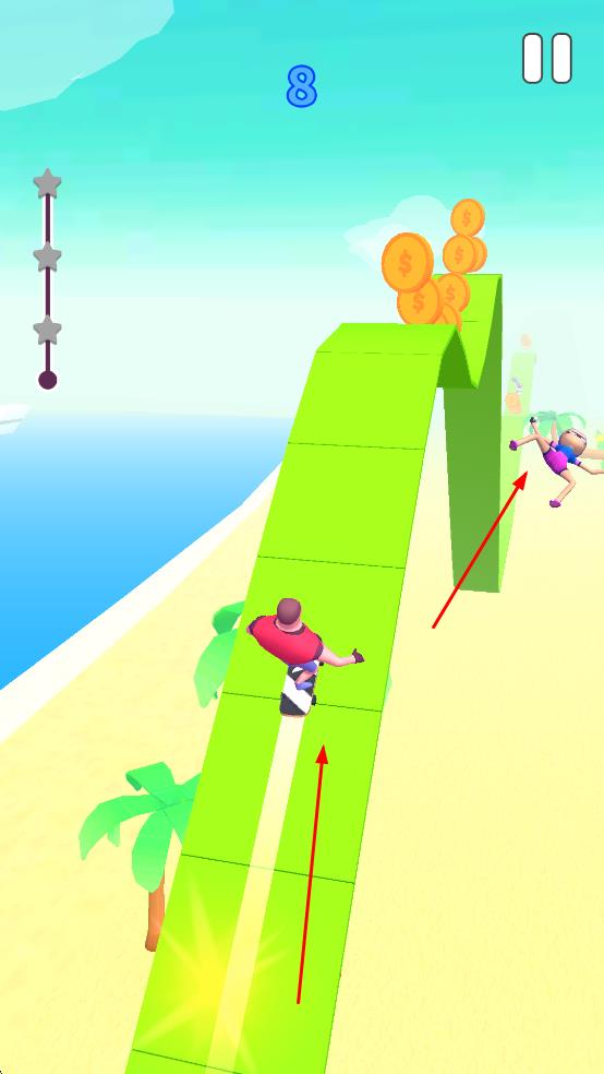 3、连续冲刺收集金币:保持连续冲刺状态提升前进效率,同时收集沿途金币,金币可用于强化表现或兑换奖励,持续的冲刺与收集能积累优势,助力最终争夺大赛优胜。