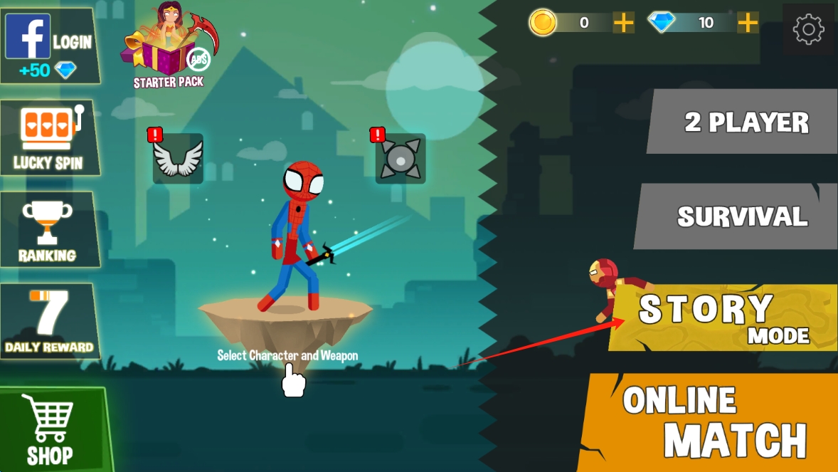 3、在游戏模式选择界面,挑选喜欢的模式,如STORY-MODE或SURVIVAL,开启相应的游戏挑战,体验不同的游戏乐趣。