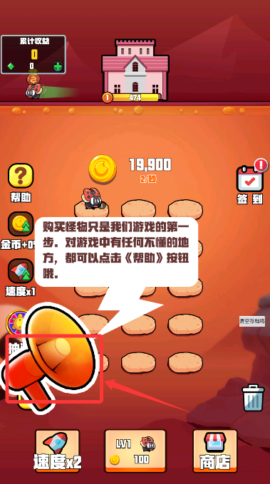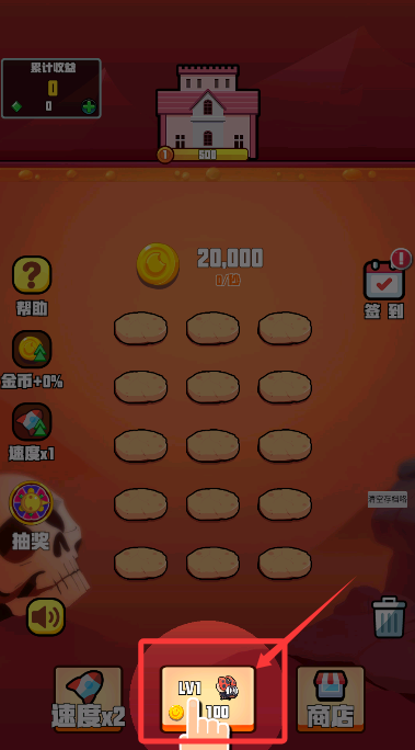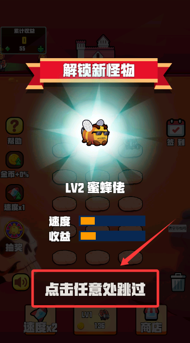 2、主城界面选择等级标识,消耗资源解锁新怪物或提升现有伙伴能力。