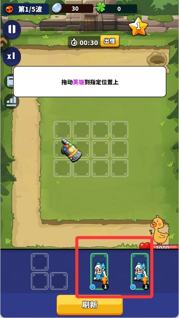 3、开始游戏后拖动下方的英雄到指定的位置上。
