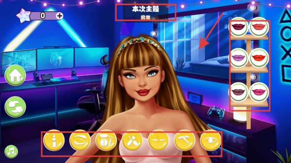 3、本次主题为另类,你可以从右侧选择合适的唇色,再利用下方丰富的化妆工具,打造出符合主题的独特妆容。