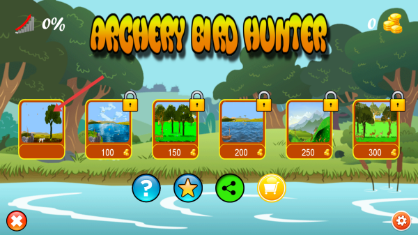 1、在游戏Archery Bird Hunter中,选择合适的场景开始游戏,如果后面你有多的金币还可以解锁别的场景,开启猎鸟之旅。