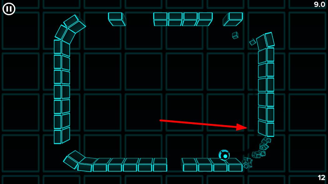 3、砖块转动与小球生存:持续控制周围砖块转动,引导自动移动的小球在空间内穿梭,避免小球接触屏幕边缘掉落,砖块转动节奏需与小球移动同步,结合方块收集白点,延长小球。