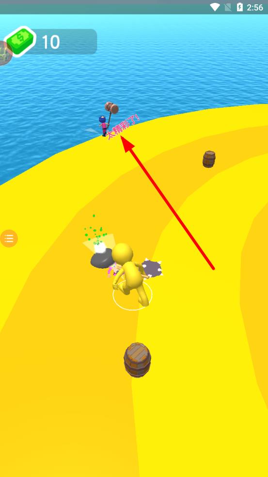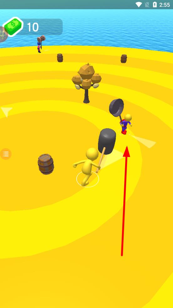 1、进入战场,滑动屏幕操控果冻人移动,靠近敌人时点击攻击键,挥动大锤,正式开启对战博弈。