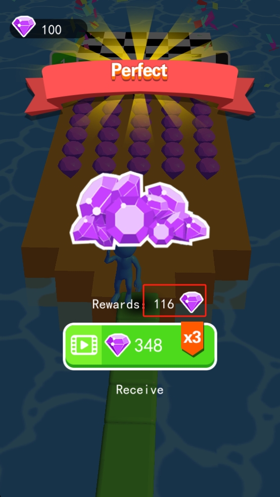 3、通关后获取116钻石奖励,可点击领取或观看广告翻倍,收获资源用于解锁皮肤或助力后续关卡。