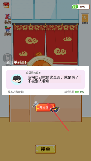 1、在游戏主界面,点击接单按钮,接收顾客订单,开始为顾客准备美食,体验餐厅经营的乐趣。