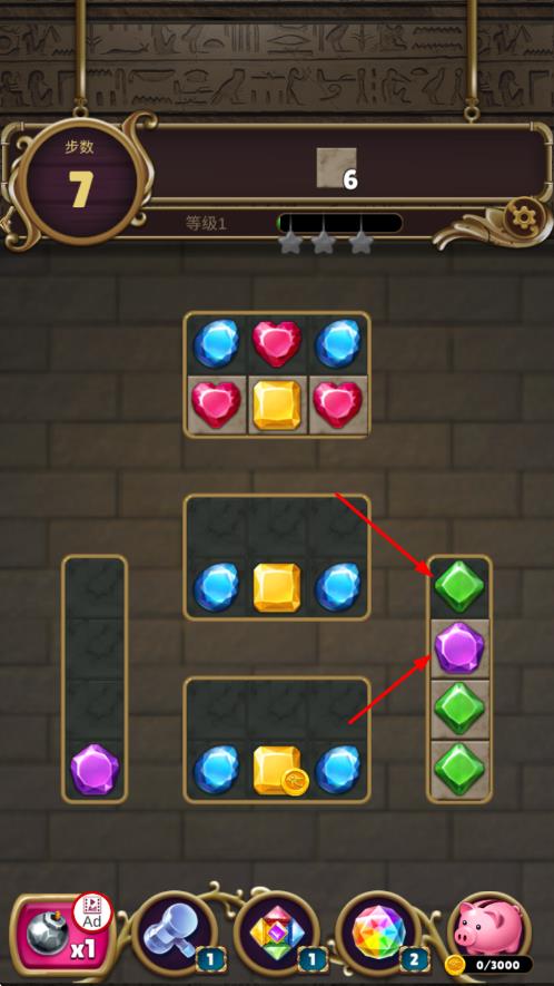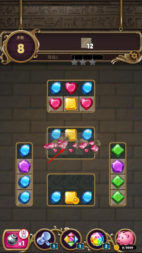 2、在闯关过程中聚焦关卡目标,优先消除指定类型宝石或破除障碍,通过连续消除生成特殊宝石,利用其特效扩大消除范围。