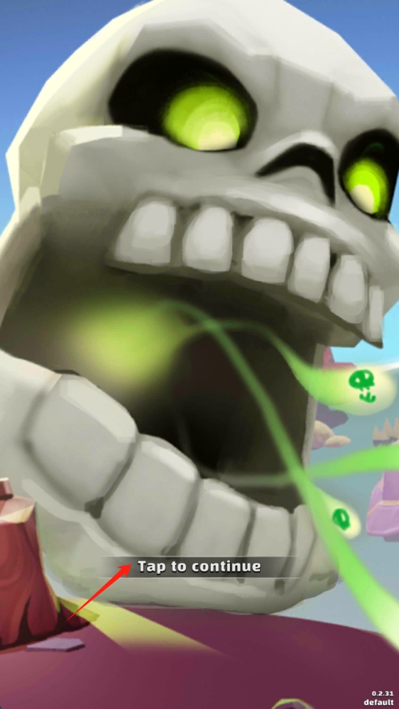 1、在游戏加载或过渡界面,看到巨大的骷髅头画面时,点击Tap-to-continue,快速进入游戏世界,开启冒险之旅。