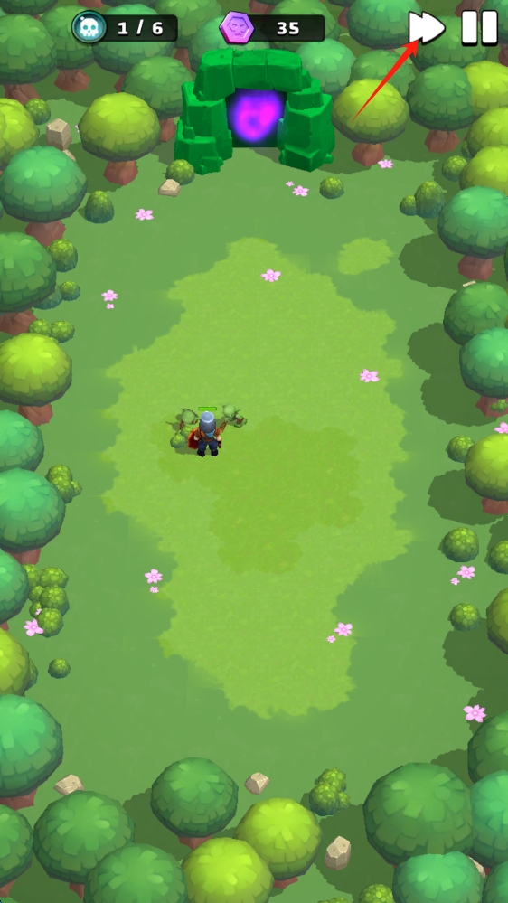 2、进入游戏关卡场景界面后,留意左上角的已击败敌人数量和总敌人数量,以及紫色货币数量,点击继续。