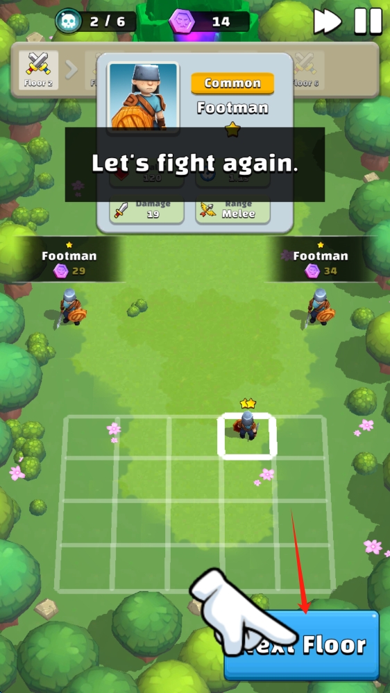 3、战斗结束后,出现战斗结束界面,看到Let's-fight-again.提示,确认角色状态和属性。