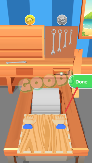 3、完成木工操作后,点击Done按钮,结束本次操作,查看自己的成果,进入下一关。
