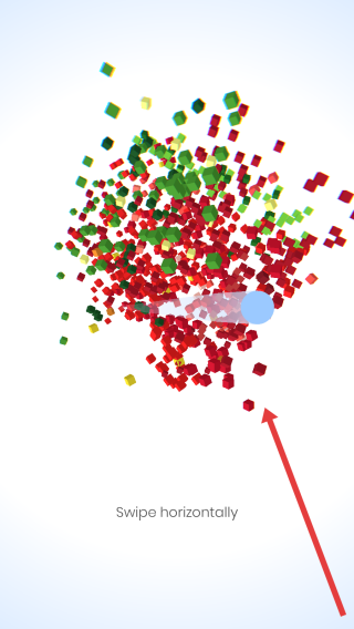 1、水平滑动屏幕,操控彩色方块移动汇聚,借滑动操作将零散方块组合,逐步构建出草莓的像素图案,呈现完整造型。