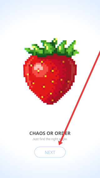 3、完成草莓图案后,点击下方NEXT按钮,进入下一关,依据CHAOS-OR-ORDER规则,寻找正确角度,推进游戏进程。