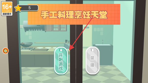1、在手工料理烹饪天堂游戏主界面,点击开始游戏按钮,即可进入游戏,开启你的手工料理烹饪之旅。