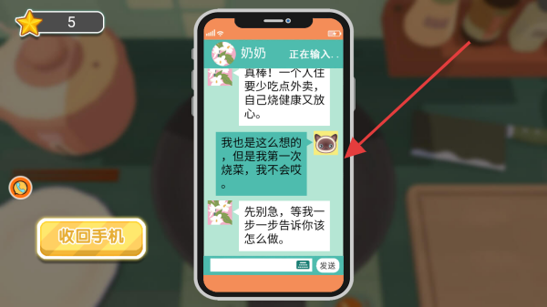 2、进入游戏后,通过与奶奶的聊天对话,获取烹饪的相关提示和建议,了解烹饪的基本步骤和技巧。