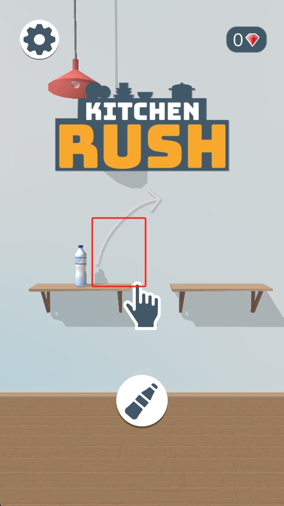 1、在初始界面点击底部水瓶图标,将其放置于左侧架子,启动关卡,借物理引擎触发水瓶跳跃流程。