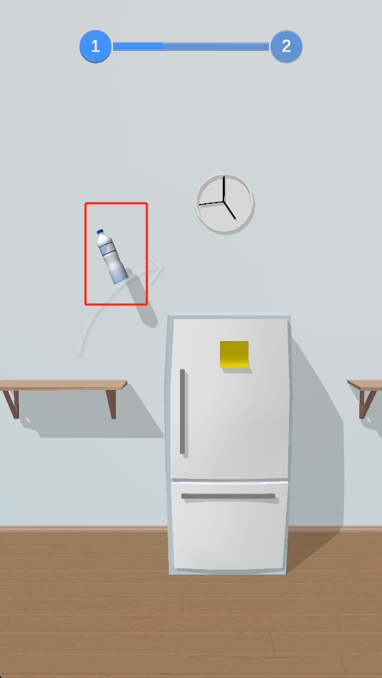 2、操控水瓶跳跃时,观察轨迹,调整释放力度与角度,让水瓶越过冰箱障碍,精准落至目标区域,达成关卡条件。