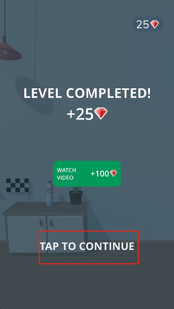 3、过关后点击TAP TO CONTINUE按钮,进入后续关卡,应对更复杂场景与障碍,延续水瓶翻转跳跃的物理挑战。