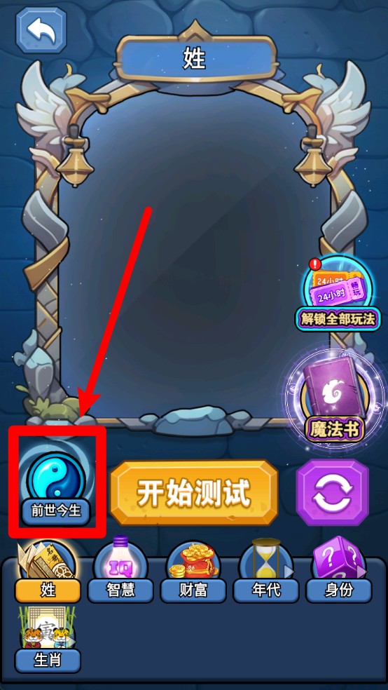 3.切换到“前世今生”页面可以进行轮回主题测试,结合姓名、生肖与其他选项探索你神秘的命运背景与人生轨迹。