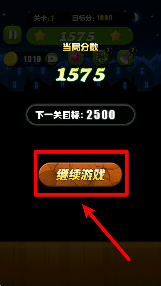 2.点击继续游戏:通关后可点击“继续游戏”按钮,直接进入下一关卡挑战,分数目标逐渐提高更具成就感。