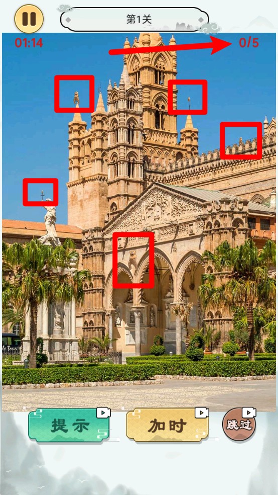 3.使用提示辅助通关:若遇到难以分辨的差异,可以使用“提示”获得帮助,或点击“加时”延长时间更从容完成。
