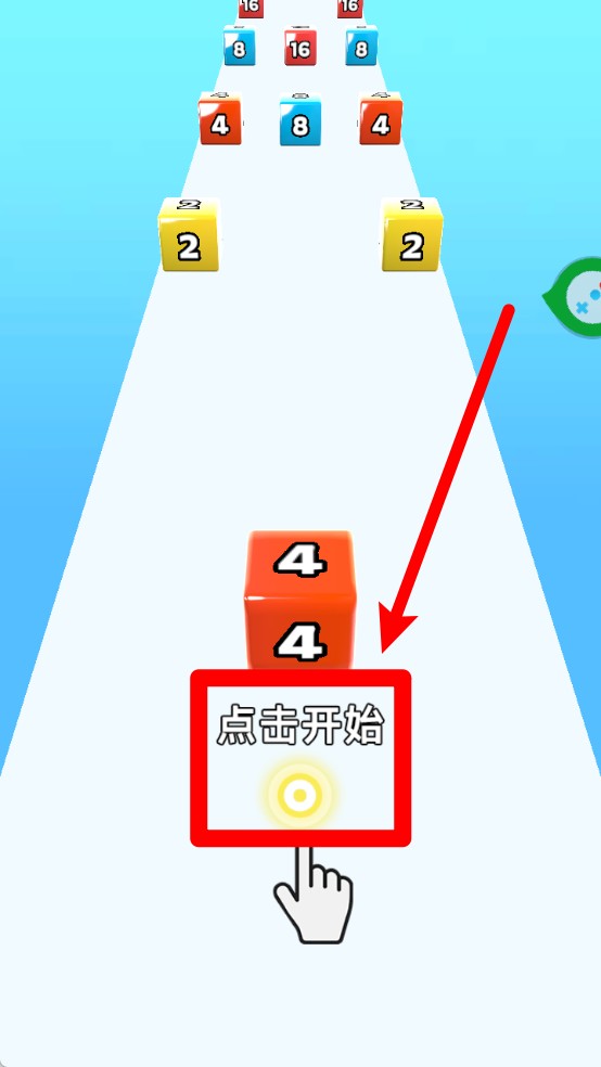 1.点击开始闯关:游戏开始前点击“点击开始”,操控数字方块进入赛道,准备迎接各种挑战与合成。