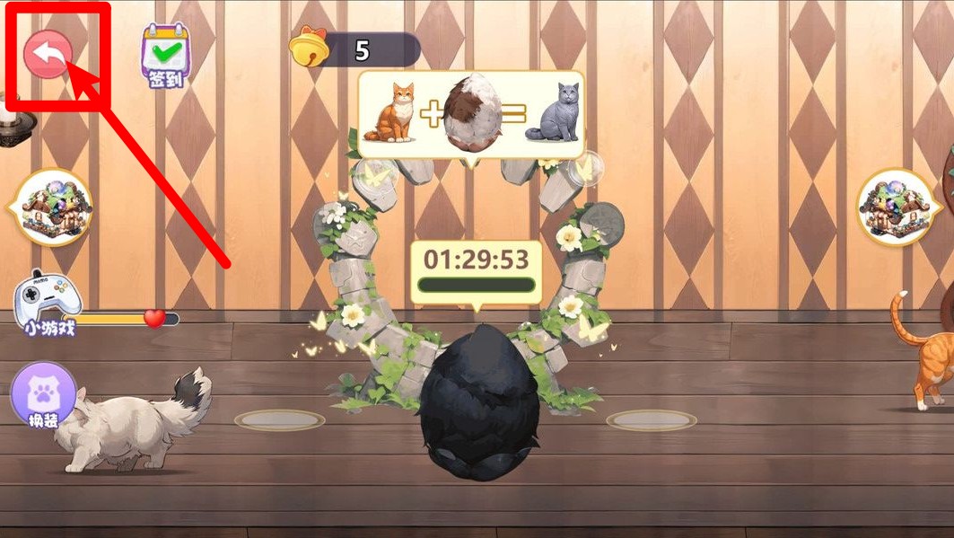 2.便捷返回功能:点击界面左上角的返回按钮,可快速退出当前场景,方便玩家切换内容或重新选择猫咪。