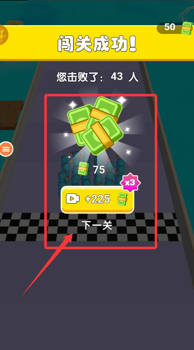 4、当击败数量达到要求即可胜利,自由选择进入下一关卡继续冒险。