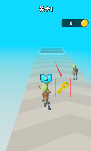 3、操控角色拾取红框黄钥匙,完成关卡1收集任务。