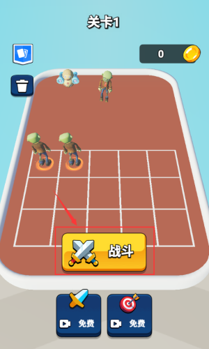 4、点击红框战斗按钮,开始关卡1僵尸对战模式。