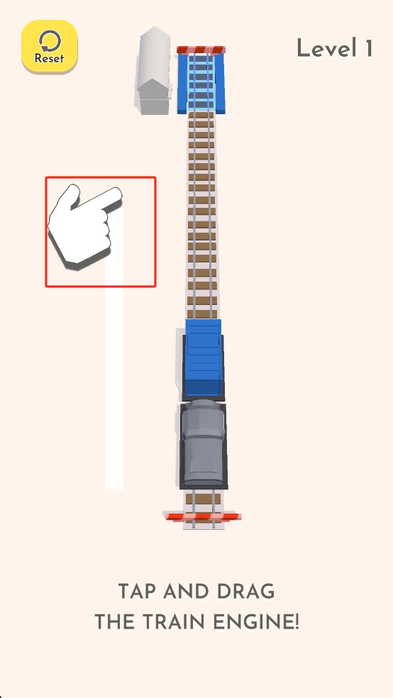 1、依照指引点击并拖动火车头,使其沿着笔直轨道向前移动,逐步与前方的车厢完成连接。
